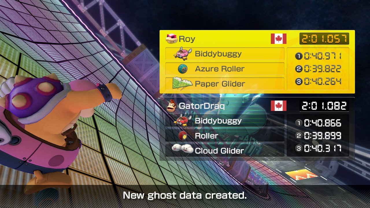 Here, you can find a listing of all of the records by GatorDraq for Mario Kart 8 Deluxe. For each track, the score and ranks are listed. This page is divided into sections by record category (such as 150cc or 200cc).